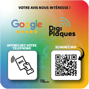- Personnalisable : Personnalisez la plaque avec votre logo, couleurs de marque, et un message incitatif pour encourager les avis.